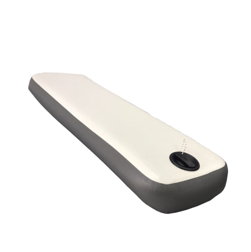 Накладка на банку из Аирдека на сегодняшний день новинка в данном направлении. Ткань Airdeck позволяет нам изменять жесткость накладки изменением давления воздуха в ней. По необходимости её можно сделать абсолютно жесткой или мягкой.