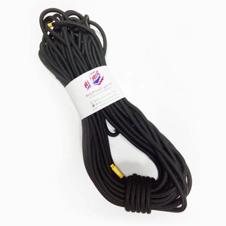 Эта якорная веревка имеет положительную плавучесть, Якорная веревка продается в мотках по 30 м. Нагрузка на разрыв составляет: шнур 6мм – 350 кгс, шнур 8мм -500 кгс.