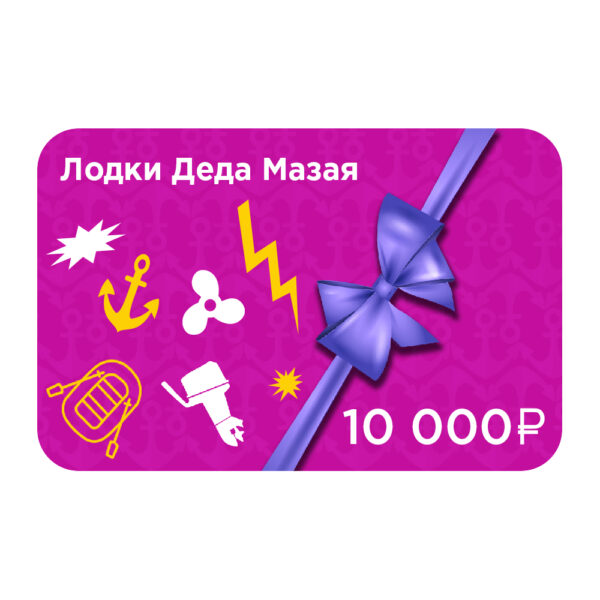 Каталог лодок Сертификаты Электронный подарочный сертификат номиналом: 10000 рублей