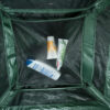 Все швы палатки в обязательном порядке проклеены, чтобыконструкция была максимально защищена даже от сильных дождей. Внутри палатки множество кармашков для размещения не очень тяжелых вещей. Это может быть туалетная бумага или мыло. Четыре кармана расположены под куполом палатки, там же подвешенасъемная полка, которая выдержит вес полотенца, но размещение на ней тяжелой емкости с водой для душа может привести к разрушению полки. Дополнительные съемные карманы расположены на двух боковых стенках.