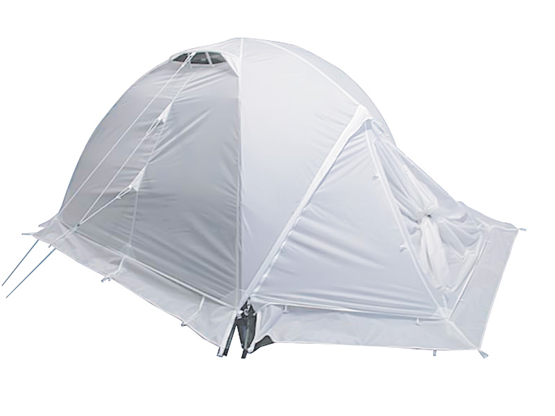 Белый тент позволяет произвести маскировку Mark 10T в зимнее время и повысить теплоизоляционные свойства палатки. При сильном падении температуры и выпадении конденсата возможно обмерзание молний. В этом случае можно использовать вход-тубус, затягиваемый шнуром.