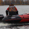Надувная лодка Хантер 350 ПРО со стационарным вклеенным умеренно-килевым дном низкого давления (НДНД) рассчитана на использование с мотором до 15 л.с. с максимальной загрузкой до 600 кг. Предназначена для рыбалки, охоты и активного отдыха на воде небольшой компанией. Выпускается в двух расцветах — комбинированном красно/черном цвете и комбинированном черно/камуфлированном цвете.